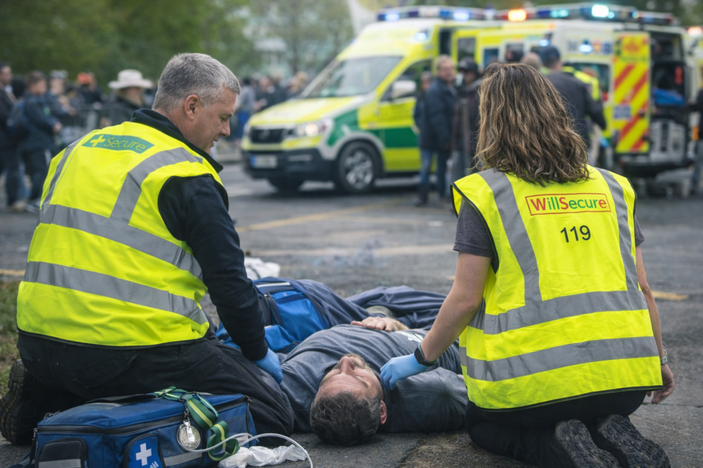 Willsecure’s Medical & First Aid Services deliver trained medical personnel to workplaces, events, and public spaces, ensuring rapid response to injuries, illness, and emergencies. Our team is equipped to provide high-quality care while maintaining a safe and controlled environment.